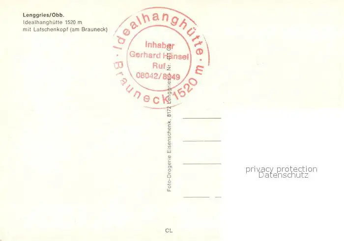 Lenggries Idealhanghuette mit Latschenkopf am Brauneck Bayerische Voralpen Lenggries postalisch nicht gelaufen nach 1965 Erhaltung siehe scans [FriedD77] Frierer