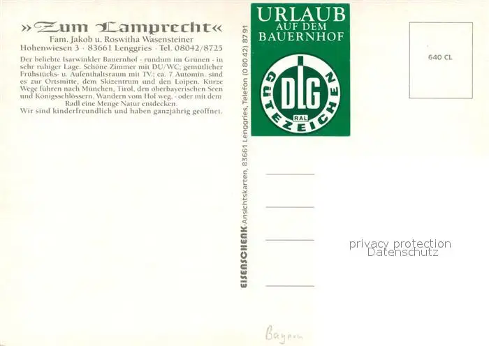 Lenggries Lamprechtshof Lenggries postalisch nicht gelaufen nach 1965 Erhaltung siehe scans [WerneD78] WernPID7