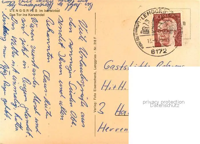Lenggries Panorama im Isarwinkel Lenggries postalisch gelaufen nach 1965 Erhaltung siehe scans [WerneD78] WernPID7