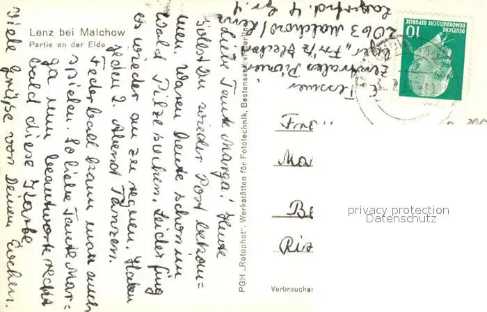 Lenz_Malchow Partie an der Elde Petersdorfer Kanal Fahrgastschiff Anleger Lenz Malchow postalisch gelaufen 1965 Erhaltung siehe scans [FriedD77] Frierer