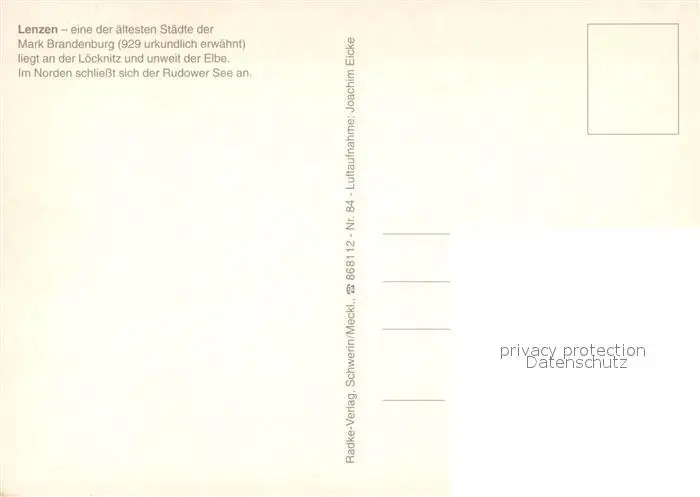 Lenzen Elbe Kategorie Alte Ansichtskarten Postkarten bx62701 Lenzen_Elbe Fliegeraufnahme Lenzen Elbe postalisch nicht gelaufen nach 1965 Erhaltung siehe scans [KathaD81]