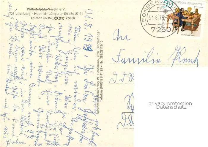 Leonberg_Wuerttemberg Philadelphia Verein Teilansichten Leonberg Wuerttemberg postalisch gelaufen 1979 Erhaltung siehe scans [WerneD78] WernPID7