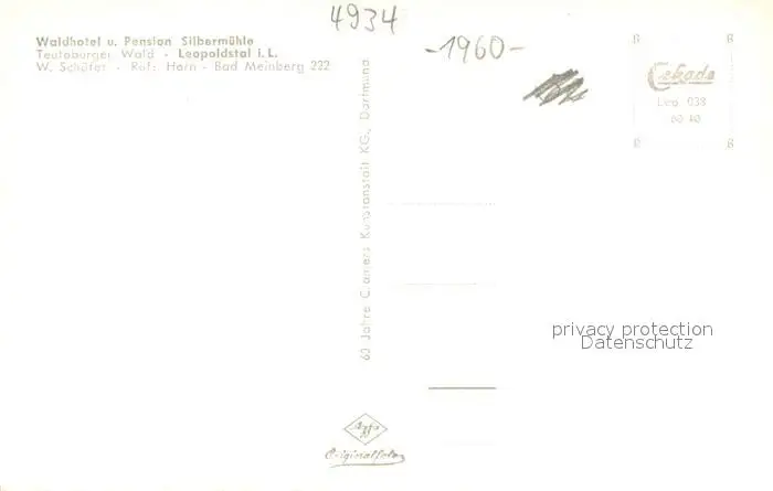 Leopoldstal_Lippe Waldhotel Silbermuehle Leopoldstal_Lippe postalisch nicht gelaufen 1960 Erhaltung siehe scans [WerneD78] WernPID7