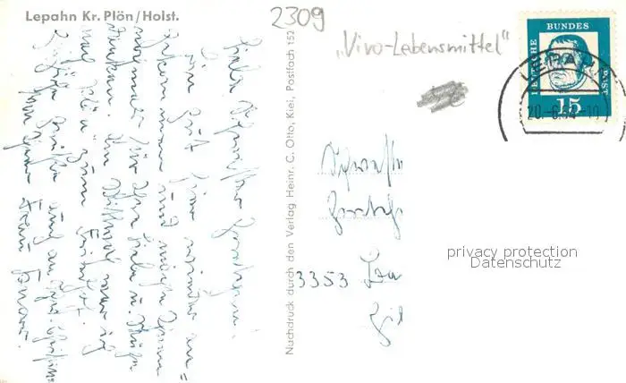 Lepahn_Holstein Vivo Lebensmittelgeschaeft Lepahn_Holstein postalisch gelaufen 1964 Erhaltung siehe scans [WerneD78] WernPID7