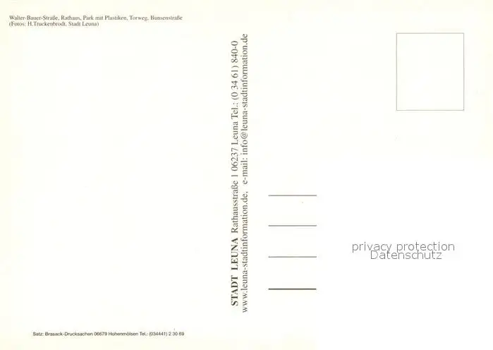 Leuna Walter Bauer Strasse Rathaus Park Plastiken Torweg Bunsenstrasse Leuna postalisch nicht gelaufen nach 1965 Erhaltung siehe scans [FriedD77] Frierer
