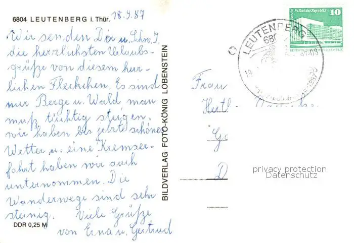 Leutenberg_Thueringen Ansicht vom Waldrand aus Blick ins Tal Leutenberg Thueringen postalisch gelaufen 1987 Erhaltung siehe scans [FriedD77] Frierer