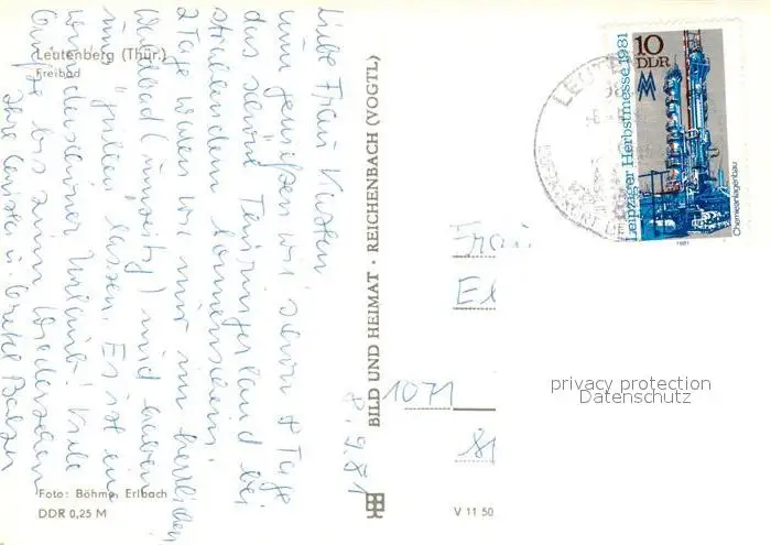 Leutenberg_Thueringen Freibad Leutenberg Thueringen postalisch gelaufen 1981 Erhaltung siehe scans [FriedD77] Frierer