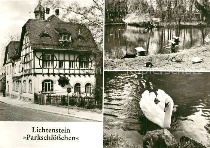Lichtenstein Kategorie Alte Ansichtskarten Postkarten kq47509 Lichtenstein_Hohenstein Ernstthal Parkschloesschen Schwanenteich Schwan Lichtenstein postalisch nicht gelaufen 1981 Erhaltung siehe scans [FriedD77]