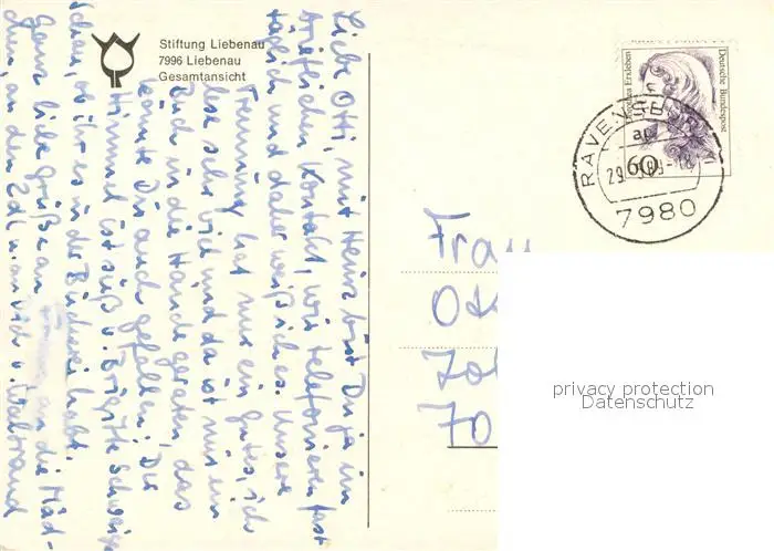 Liebenau Meckenbeuren Kategorie Alte Ansichtskarten Postkarten bx49129 Liebenau_Meckenbeuren Stiftung Liebenau Gesamtansicht Liebenau Meckenbeuren postalisch gelaufen 1989 Erhaltung siehe scans [FriedD77]
