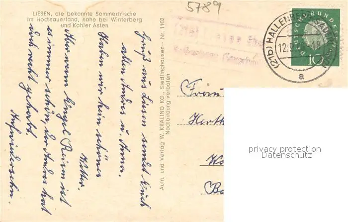 Liesen Astenturm Ortsansichten Nuhnetal Panorama Liesen postalisch gelaufen 1960 Erhaltung siehe scans [WerneD78] WernPID7