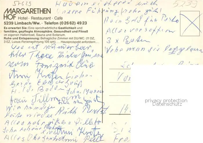 Limbach_Westerwald Margarethen Hof Hotel Restaurant Gaststube Hallenbad Bruecke Limbach_Westerwald postalisch nicht gelaufen nach 1965 Erhaltung siehe scans [WerneD78] WernPID7