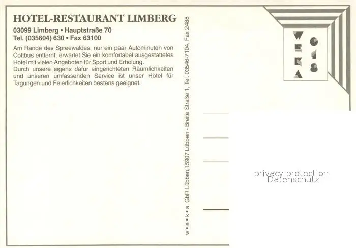 Limberg_Cottbus Hotel Limberg Spreewald Tracht Tennis Limberg Cottbus postalisch nicht gelaufen nach 1965 Erhaltung siehe scans [LiesaD40] LiesID40