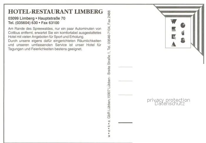 Limberg_Cottbus Hotel Restaurant Limberg Rezeption Tennisplatz Konferenzraum Limberg Cottbus postalisch nicht gelaufen nach 1965 Erhaltung siehe scans [WerneD78] WernPID7