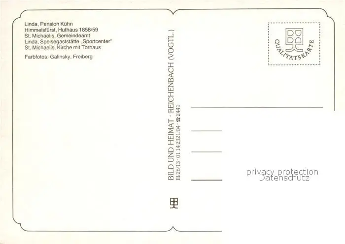 Linda_Freiberg St. Michaelis-Gemeindeamt Himmelsfuerst-Huthaus Linda-Speisegaststaette-Sportcenter Linda Freiberg postalisch nicht gelaufen nach 1965 Erhaltung siehe scans [LiesaD40] LiesID40
