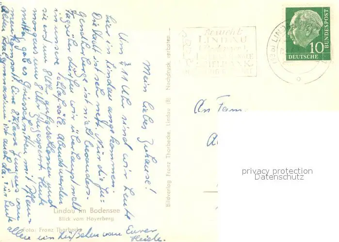 Lindau_Bodensee Blick vom Hoyerberg Lindau Bodensee postalisch gelaufen 1921-1965 Erhaltung siehe scans [NatalD47] NataID47