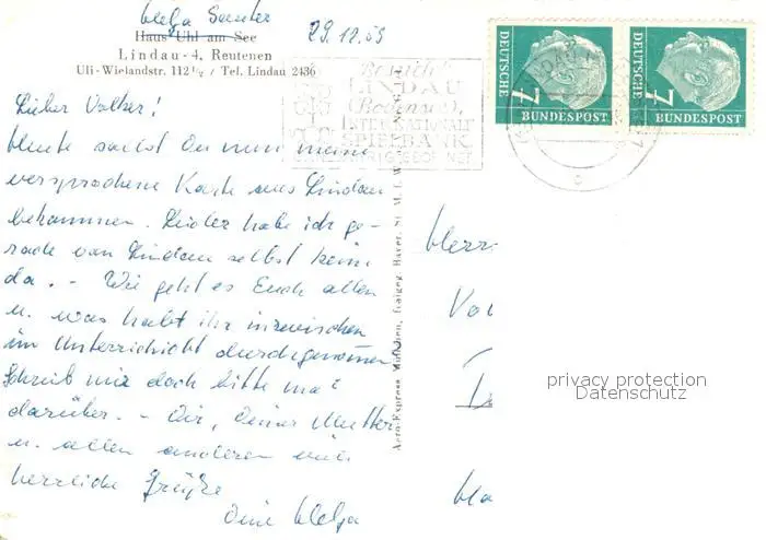 Lindau_Bodensee Fliegeraufnahme Haus Uhl am See Lindau Bodensee postalisch gelaufen 1921-1965 Erhaltung siehe scans [NatalD47] NataID47