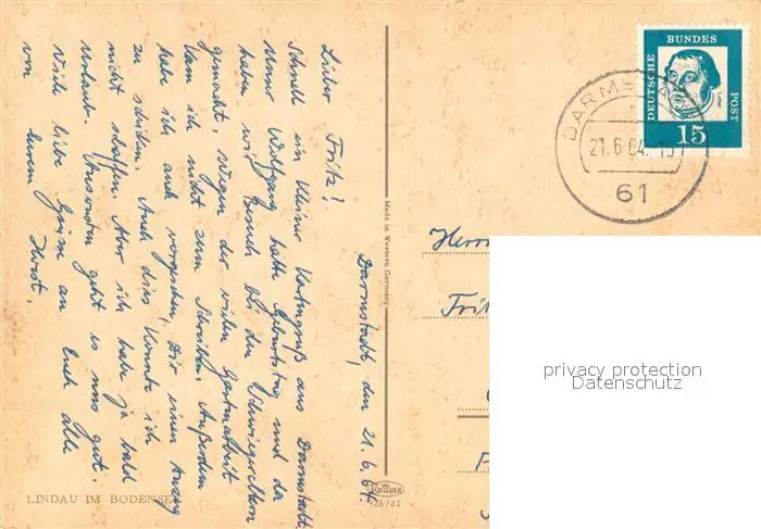 Lindau_Bodensee Fliegeraufnahme Lindau Bodensee postalisch gelaufen 1964 Erhaltung siehe scans [WerneD78] WernPID7