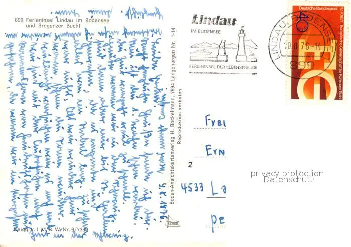 Lindau_Bodensee Fliegeraufnahme mit Bregenz und Bregenzer Bucht Lindau Bodensee postalisch gelaufen 1976 Erhaltung siehe scans [WerneD78] WernPID7