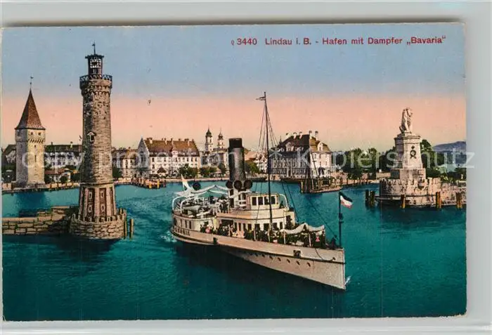 Lindau_Bodensee Hafen Dampfer Bavaria Lindau Bodensee postalisch gelaufen 1916 Erhaltung siehe scans [KathaD81] Kathoren