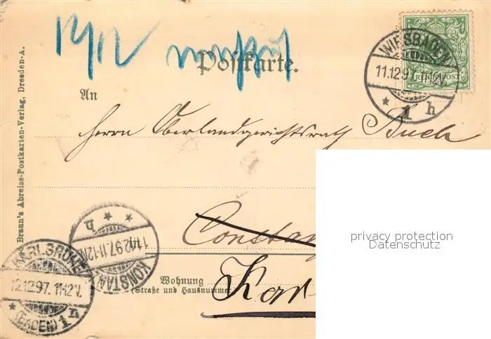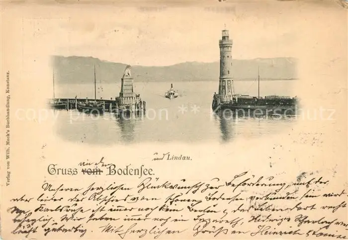 Lindau_Bodensee Hafen Lindauer Loewe Leuchtturm Lindau Bodensee postalisch gelaufen 1897 Erhaltung siehe scans [FriedD77] Frierer