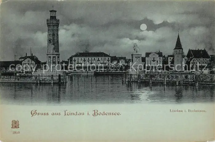 Lindau_Bodensee Hafeneinfahrt bei Vollmond Lindau Bodensee postalisch nicht gelaufen bis 1920 Erhaltung siehe scans [LiesaD40] LiesID40