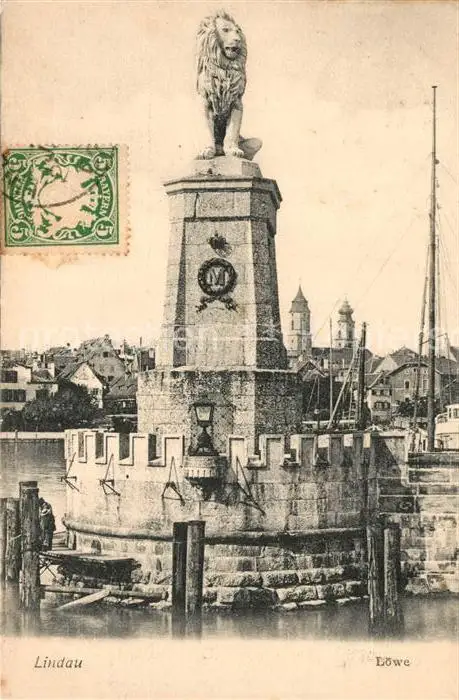 Lindau_Bodensee Hafeneinfahrt mit Loewenstandbild Lindau Bodensee postalisch gelaufen bis 1920 Erhaltung siehe scans [WerneD78] WernPID7
