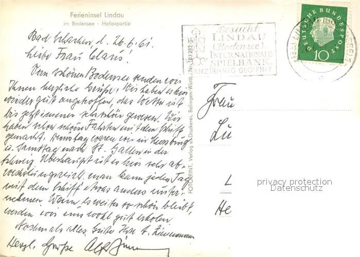 Lindau_Bodensee Hafenpartie Lindau Bodensee postalisch gelaufen 1961 Erhaltung siehe scans [WerneD78] WernPID7