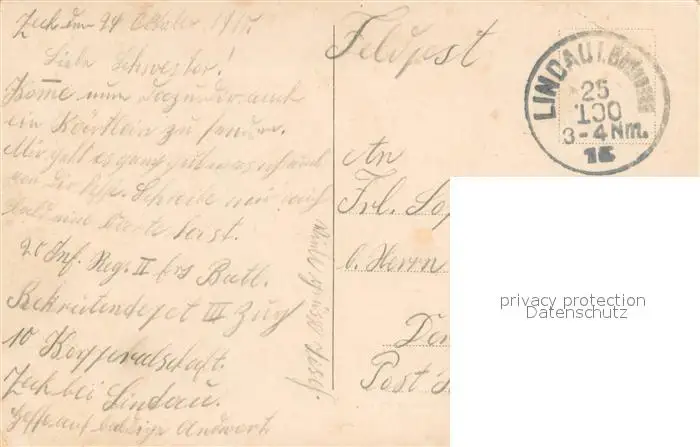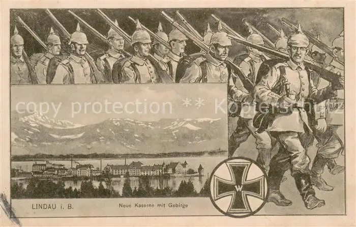 Lindau_Bodensee Neue Kaserne mit Gebirge Lindau Bodensee postalisch gelaufen 1915 Feldpost auf Karte (Motiv) Erhaltung siehe scans [WerneD78] Feldpost auf Karte (Motiv) WernPID7