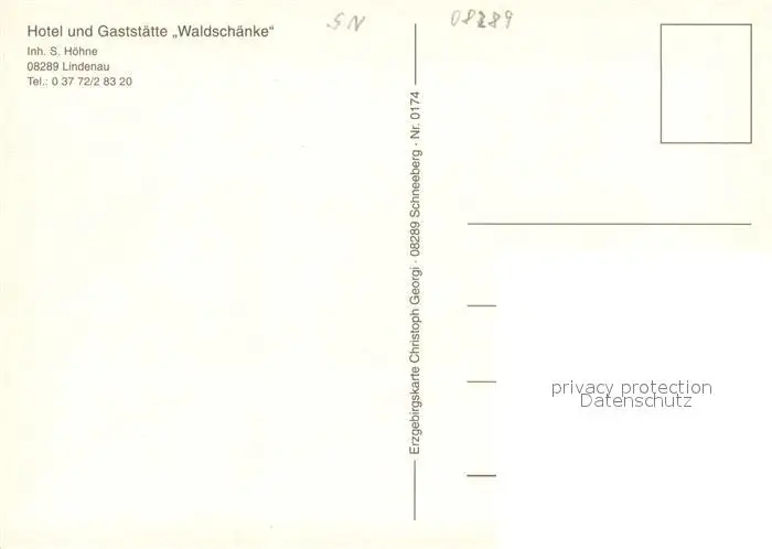 Lindenau_Schneeberg Hotel Restaurant Waldschaenke Lindenau Schneeberg postalisch nicht gelaufen nach 1965 Erhaltung siehe scans [FriedD77] Frierer