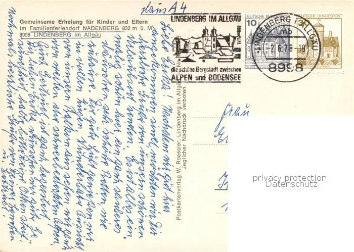 Lindenberg_Allgaeu Familienferiendorf Nadenberg Bungalows Teilansichten Badesee Kirche Lindenberg Allgaeu postalisch gelaufen 1978 Erhaltung siehe scans [WerneD78] WernPID7