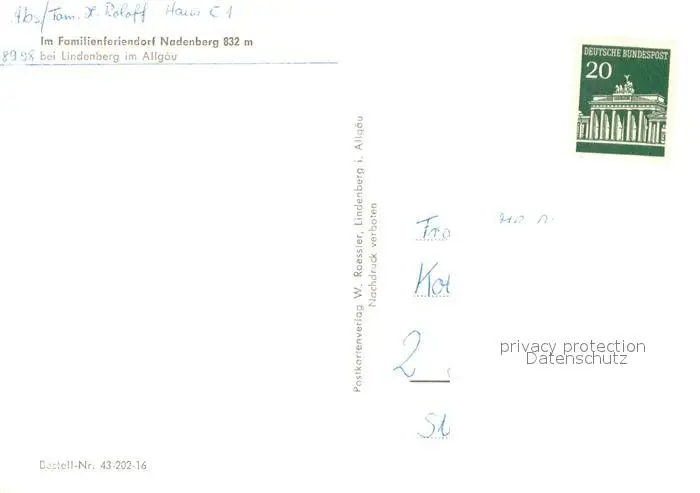 Lindenberg_Allgaeu Familienferiendorf Nadenberg im Winter Lindenberg Allgaeu postalisch nicht gelaufen nach 1965 Erhaltung siehe scans [FriedD77] Frierer