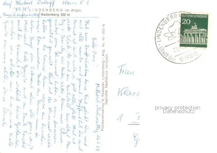 Lindenberg_Allgaeu Familienferiendorf Nadenberg im Winter Lindenberg Allgaeu postalisch gelaufen 1969 Erhaltung siehe scans [FriedD77] Frierer
