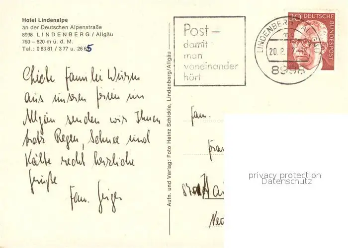 Lindenberg_Allgaeu Hotel Lindenalpe Pool Lindenberg Allgaeu postalisch gelaufen 1972 Erhaltung siehe scans [WerneD78] WernPID7