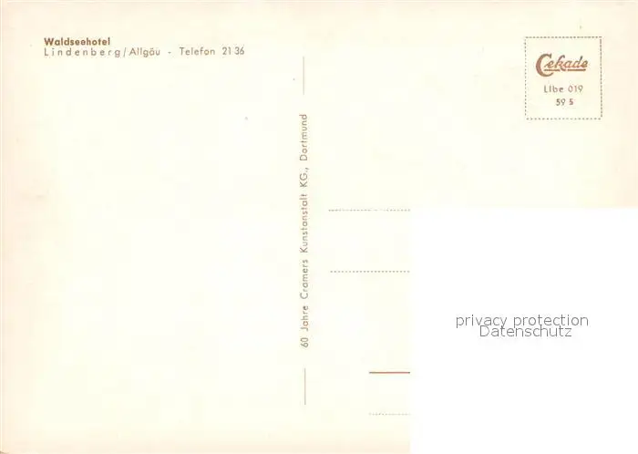 Lindenberg_Allgaeu Waldseehotel Lindenberg Allgaeu postalisch nicht gelaufen nach 1965 Erhaltung siehe scans [WerneD78] WernPID7