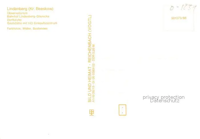 Lindenberg_Beeskow Observatorium Bahnhof Glienicke Dorfkirche Gaststaette HO Einkauf Lindenberg Beeskow postalisch nicht gelaufen nach 1965 Erhaltung siehe scans [KathaD81] Kathoren
