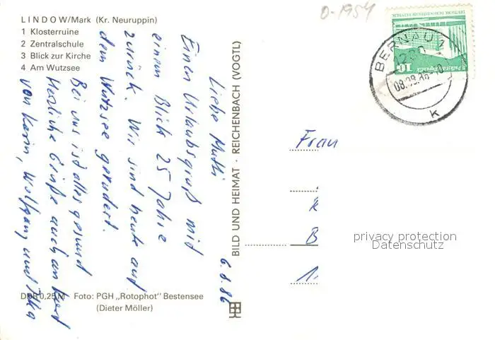 Lindow_Mark Klosterruine Zentralschule Kirche Wutzsee Lindow Mark postalisch gelaufen 1986 Erhaltung siehe scans [LiesaD40] LiesID40