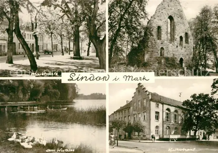 AK / Ansichtskarte Lindow_Mark Marktplatz Kulturhaus Ruine Wutzsee Handabzug Lindow Mark