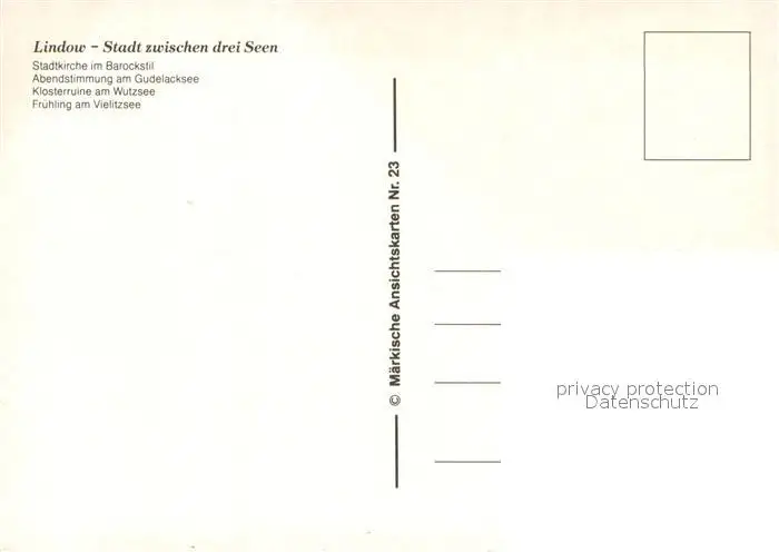 Lindow_Mark Stadtkirche Gundelacksee Klosterurine am Wutzsee Vielitzsee Lindow Mark postalisch nicht gelaufen nach 1965 Erhaltung siehe scans [LiesaD40] LiesID40