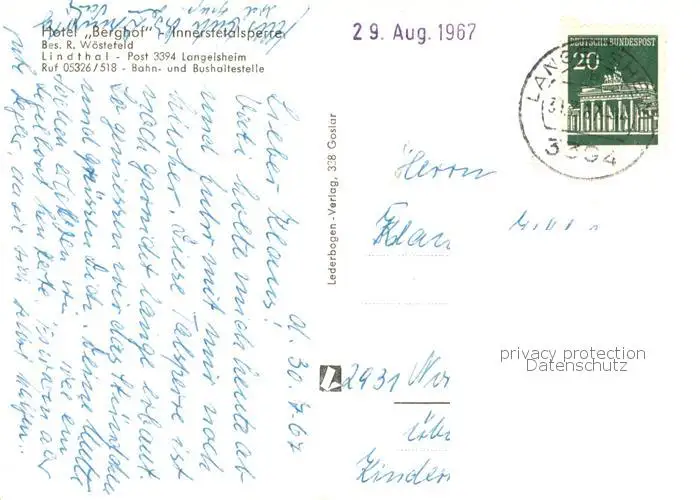 Lindthal_Langelsheim Hotel Berghof Innerstetalsperre Bootsanleger Sperrmauer Lindthal_Langelsheim postalisch gelaufen 1967 Erhaltung siehe scans [FriedD77] Frierer