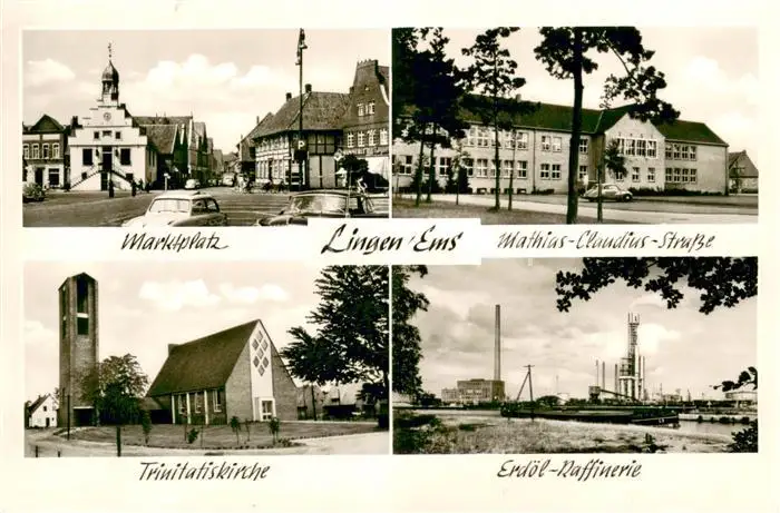 AK / Ansichtskarte Lingen_Ems MArktplatz Mathias Claudius Strasse Erdoel Raffinerie Trinitatiskirche Lingen_Ems