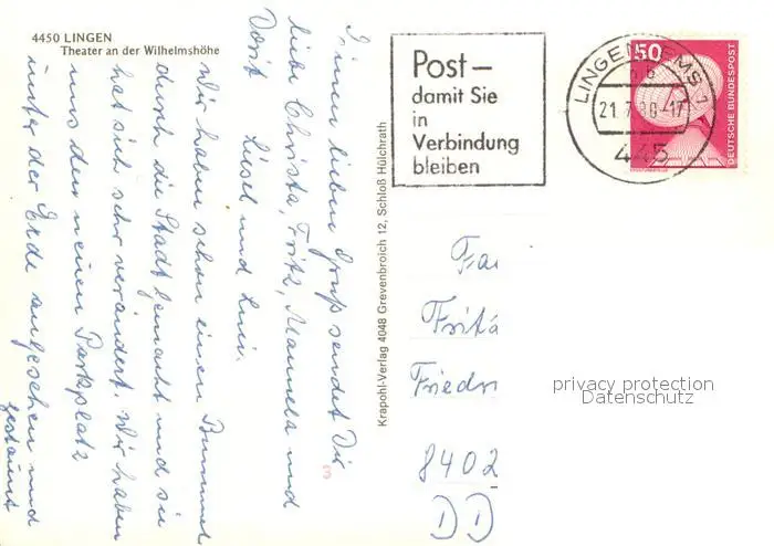 Lingen_Ems Theater an der Wilhelmshoehe Lingen_Ems postalisch gelaufen 1980 Erhaltung siehe scans [WerneD78] WernPID7