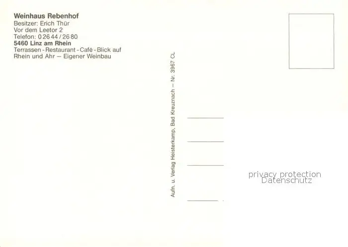 Linz_Rhein Weinhaus Rebenhof Linz_Rhein postalisch nicht gelaufen nach 1965 Erhaltung siehe scans [LiesaD40] LiesID40