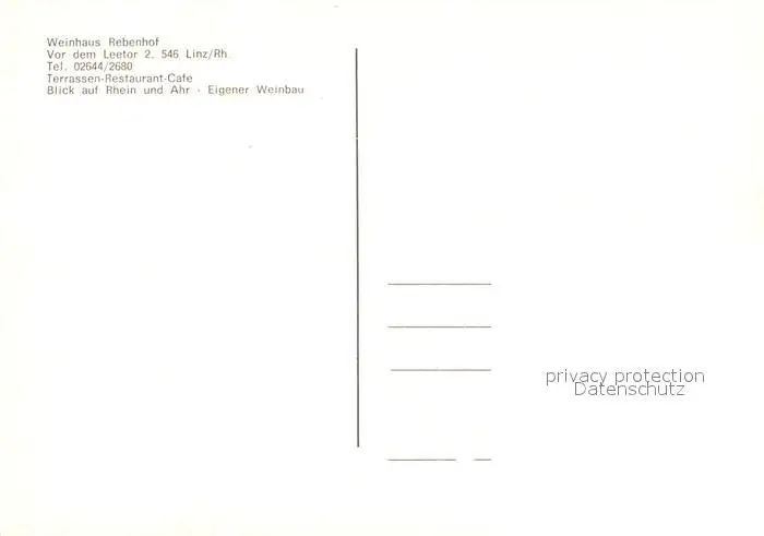 Linz_Rhein Weinhaus Rebenhof Restaurant Linz_Rhein postalisch nicht gelaufen nach 1965 Erhaltung siehe scans [LiesaD40] LiesID40