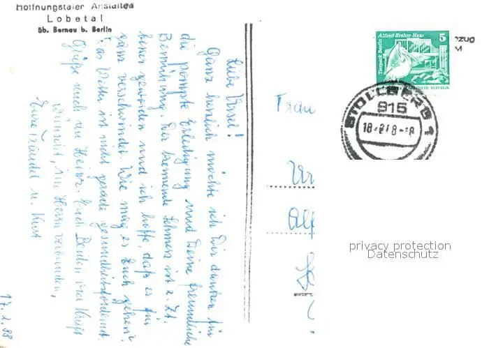 Lobetal Haus Ernterast Lobetal postalisch gelaufen 1988 Erhaltung siehe scans [WerneD78] WernPID7