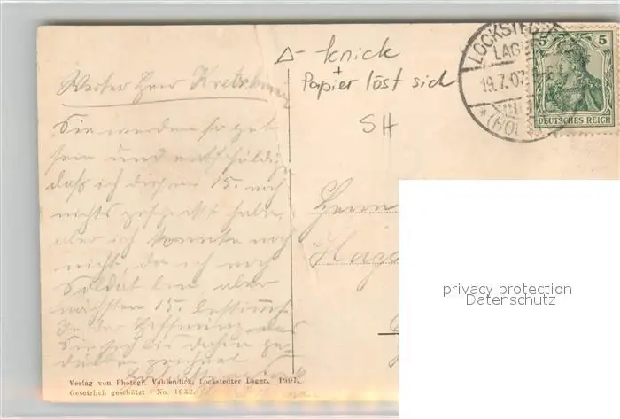 Lockstedt Lockstedter Lager Casino Wasserturm Wache und Eingang Totalansicht Lockstedt postalisch gelaufen 1907 Erhaltung siehe scans [WerneD78] WernPID7