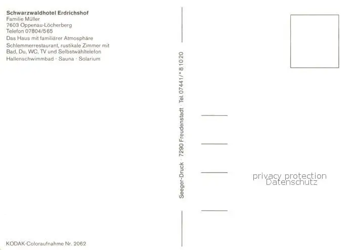 Loecherberg Schwarzwaldhotel Erdrichshof Restaurant Hallenbad Loecherberg postalisch nicht gelaufen nach 1965 Erhaltung siehe scans [FriedD77] Frierer