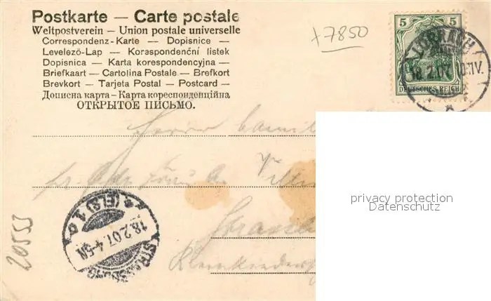 Loerrach Kategorie Alte Ansichtskarten Postkarten bx56366 Loerrach Alte Brauerei Loeffler Loerrach postalisch gelaufen 1907 Erhaltung siehe scans [NatalD47]