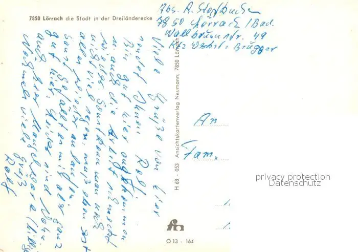 Loerrach Am Marktplatz Stetten Schweizer Grenze Salzert Turmstrasse am Hebelpark Burgruine Roetteln Loerrach postalisch nicht gelaufen nach 1965 Erhaltung siehe scans [FriedD77] Frierer