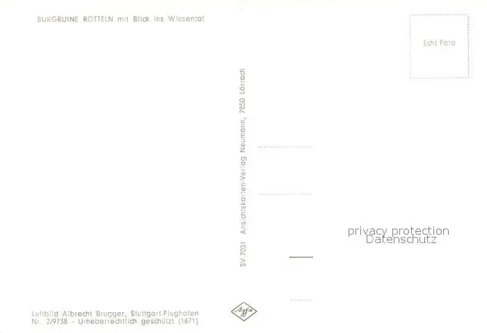 Loerrach Fliegeraufnahme mit Burgruine Roetteln Loerrach postalisch nicht gelaufen 1921-1965 Erhaltung siehe scans [WerneD78] WernPID7