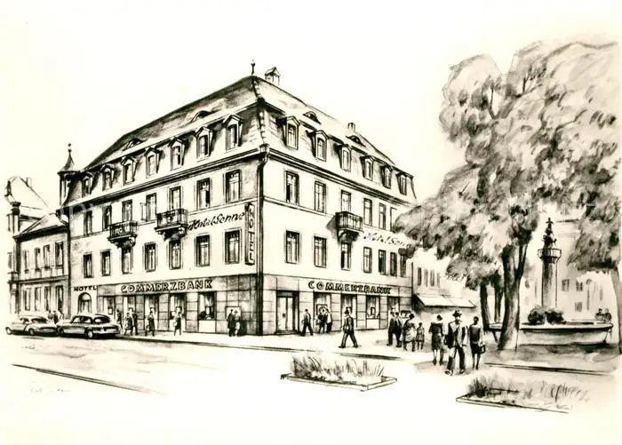 Loerrach Kategorie Alte Ansichtskarten Postkarten bx52643 Loerrach Hotel Sonne am Marktplatz Kuenstlerkarte Loerrach postalisch nicht gelaufen Erhaltung siehe scans [FriedD77]